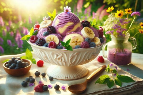 Helado de plátano y frutos del bosque fácil y delicioso